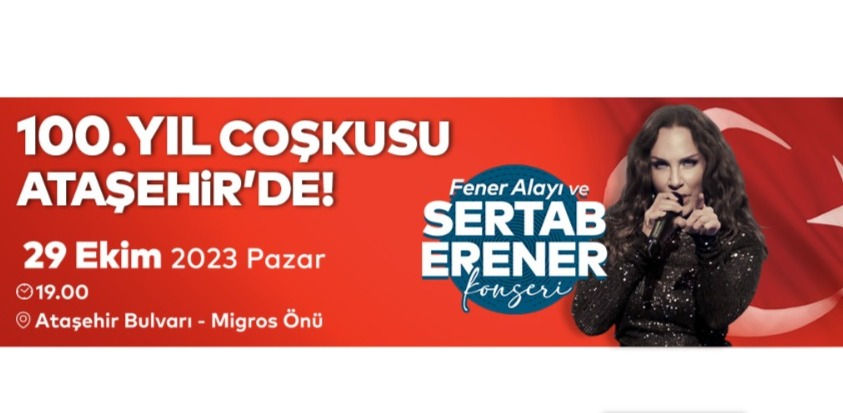 Cumhuriyet Bayramı’nın 100. yıl dönümü Ataşehir’de bugün ve yarın gerçekleştirilecek resmi törenlerin yanı sıra yarın Ataşehir Belediyesi'nin düzenlediği fener alayı yürüyüşü ve Sertab Erener konseri ile kutlanacak.